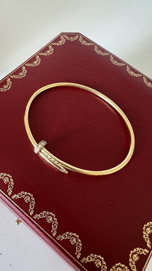 Comes with box and certificate of authenticity; yellow gold and diamonds; excellent used condition; size 17