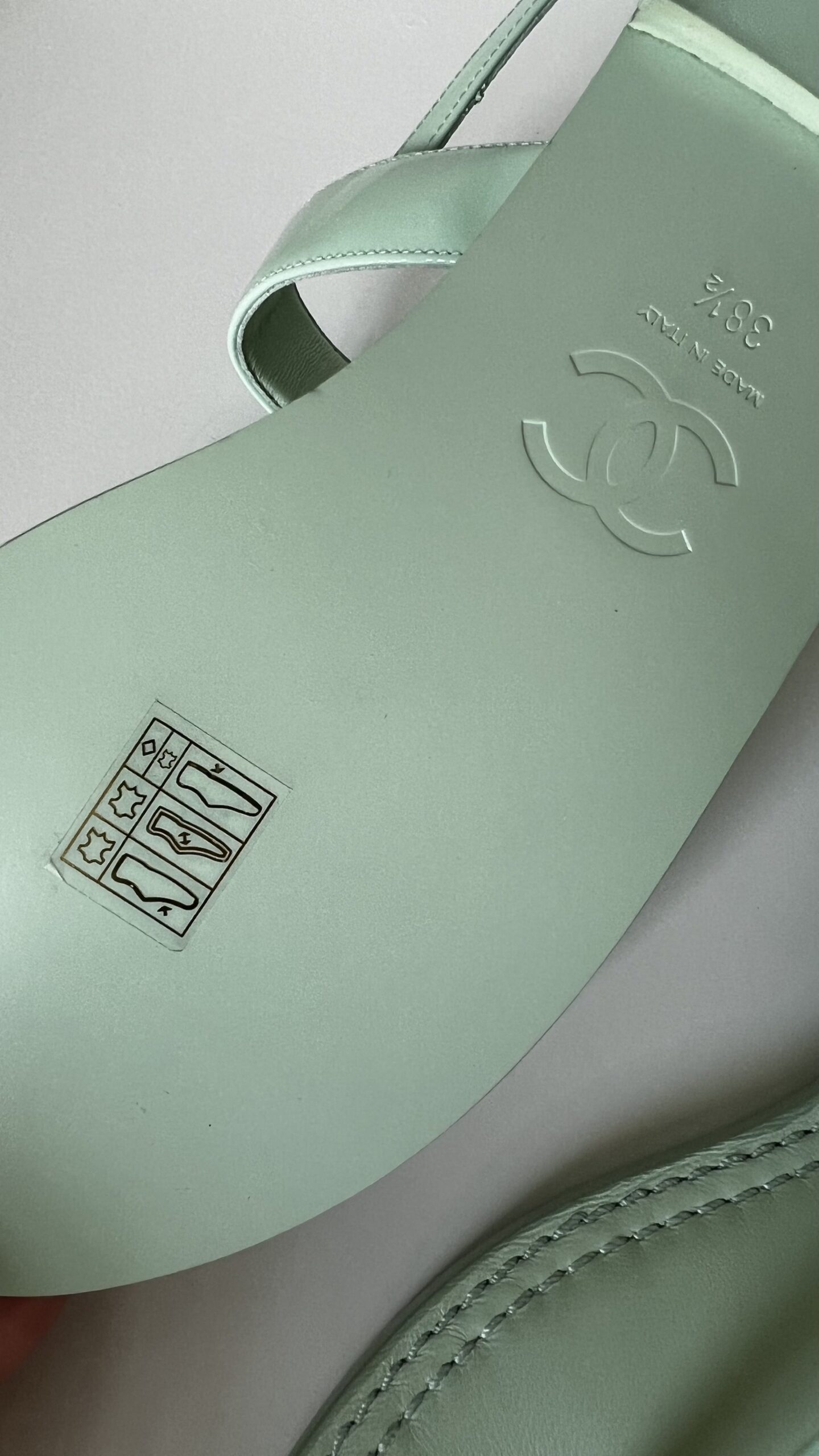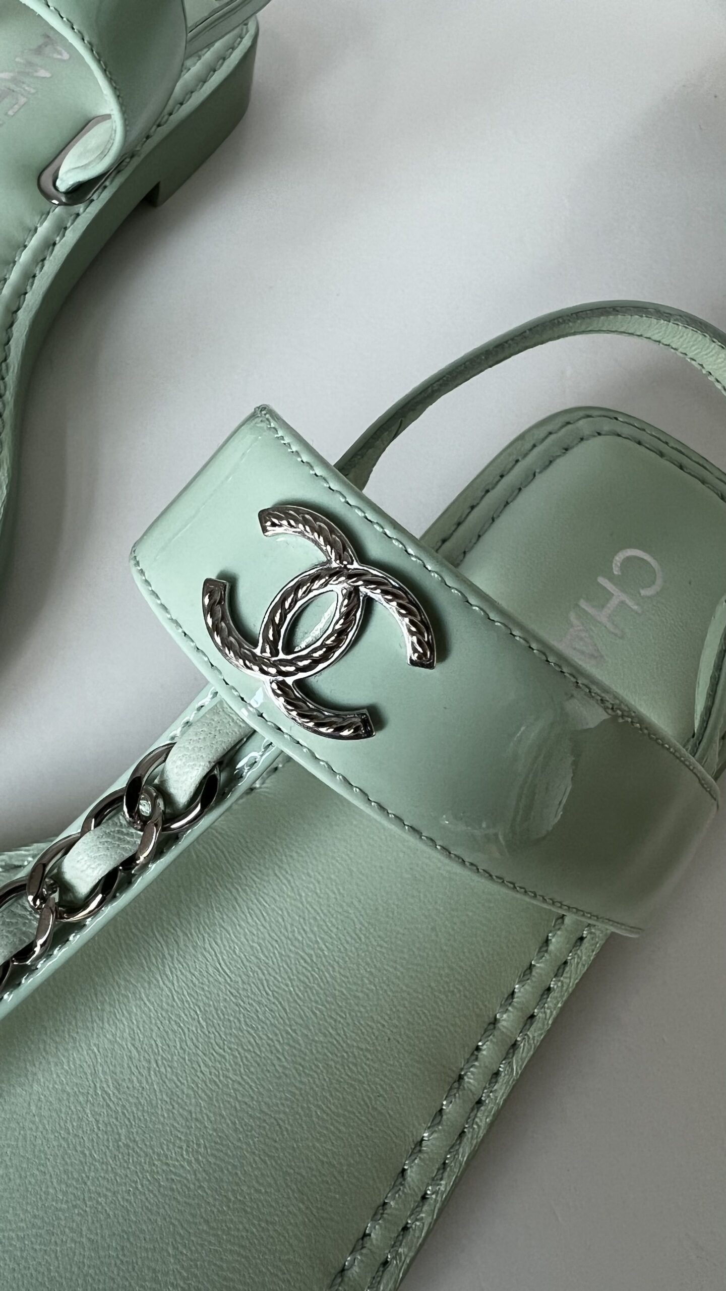 Chanel Lambskin Patent Chain CC Logo Thong Flat Sandals 38.5 Green quantity