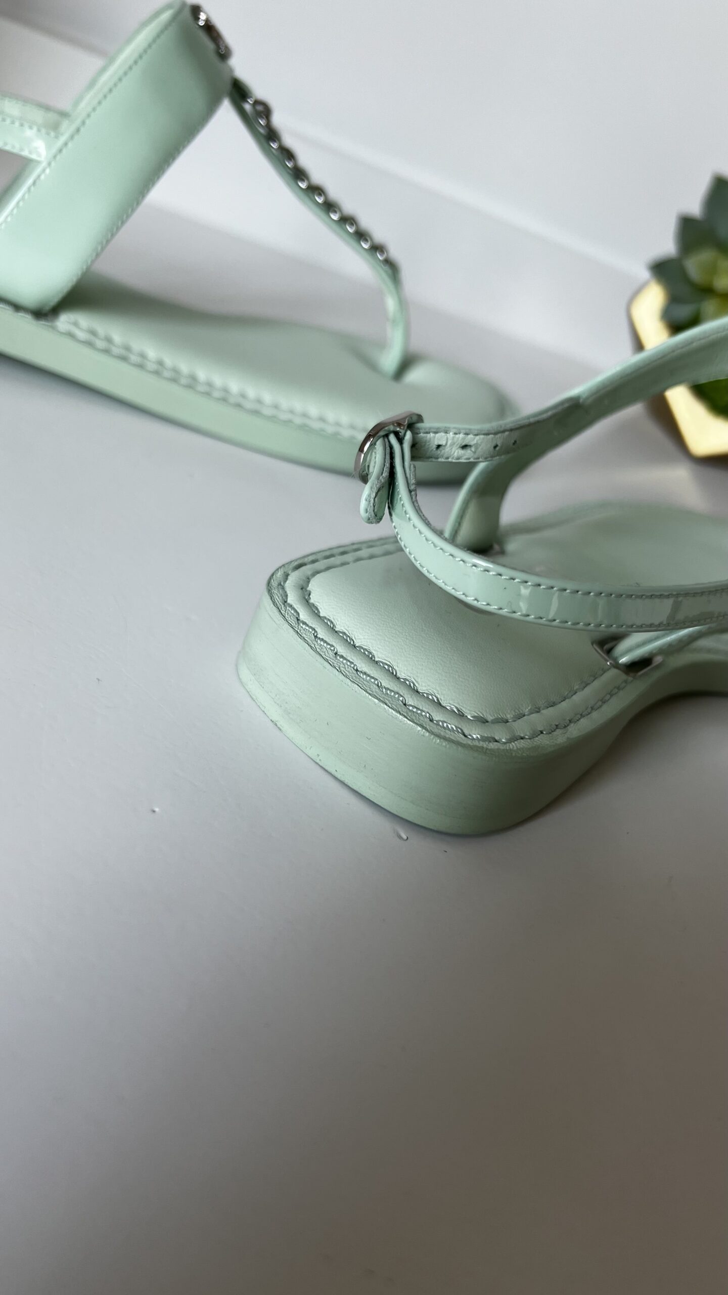 Chanel Lambskin Patent Chain CC Logo Thong Flat Sandals 38.5 Green