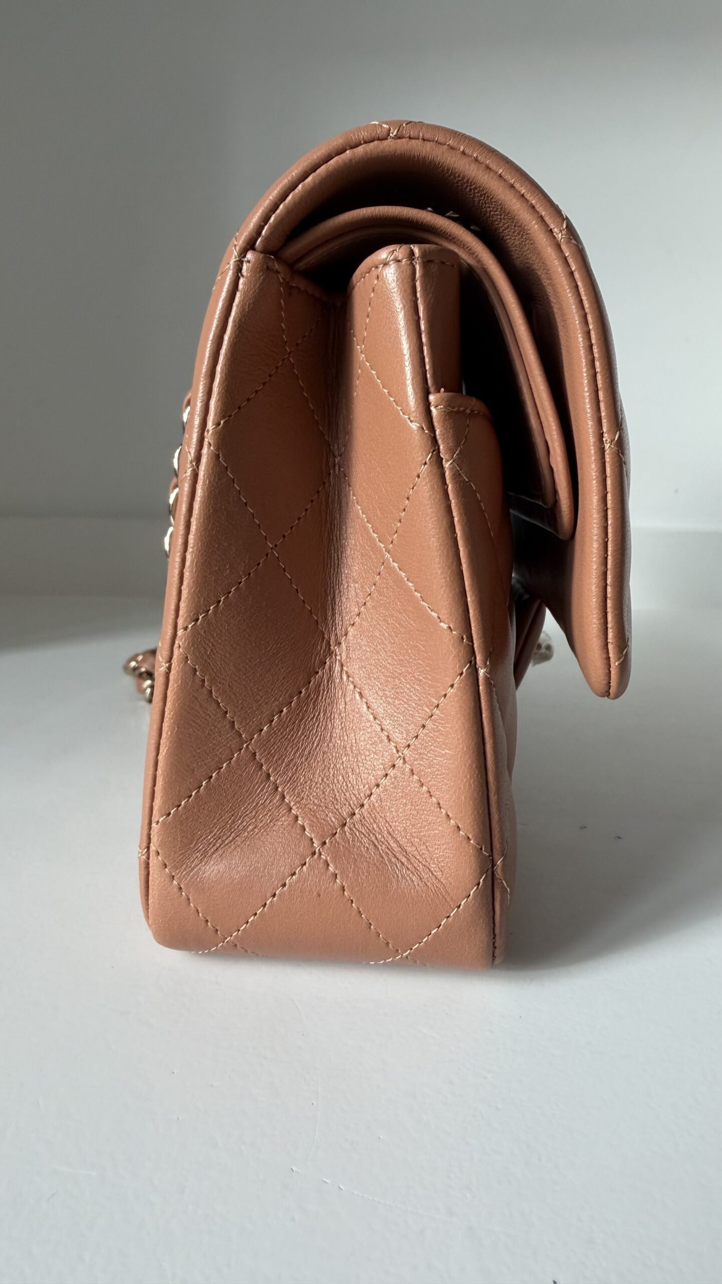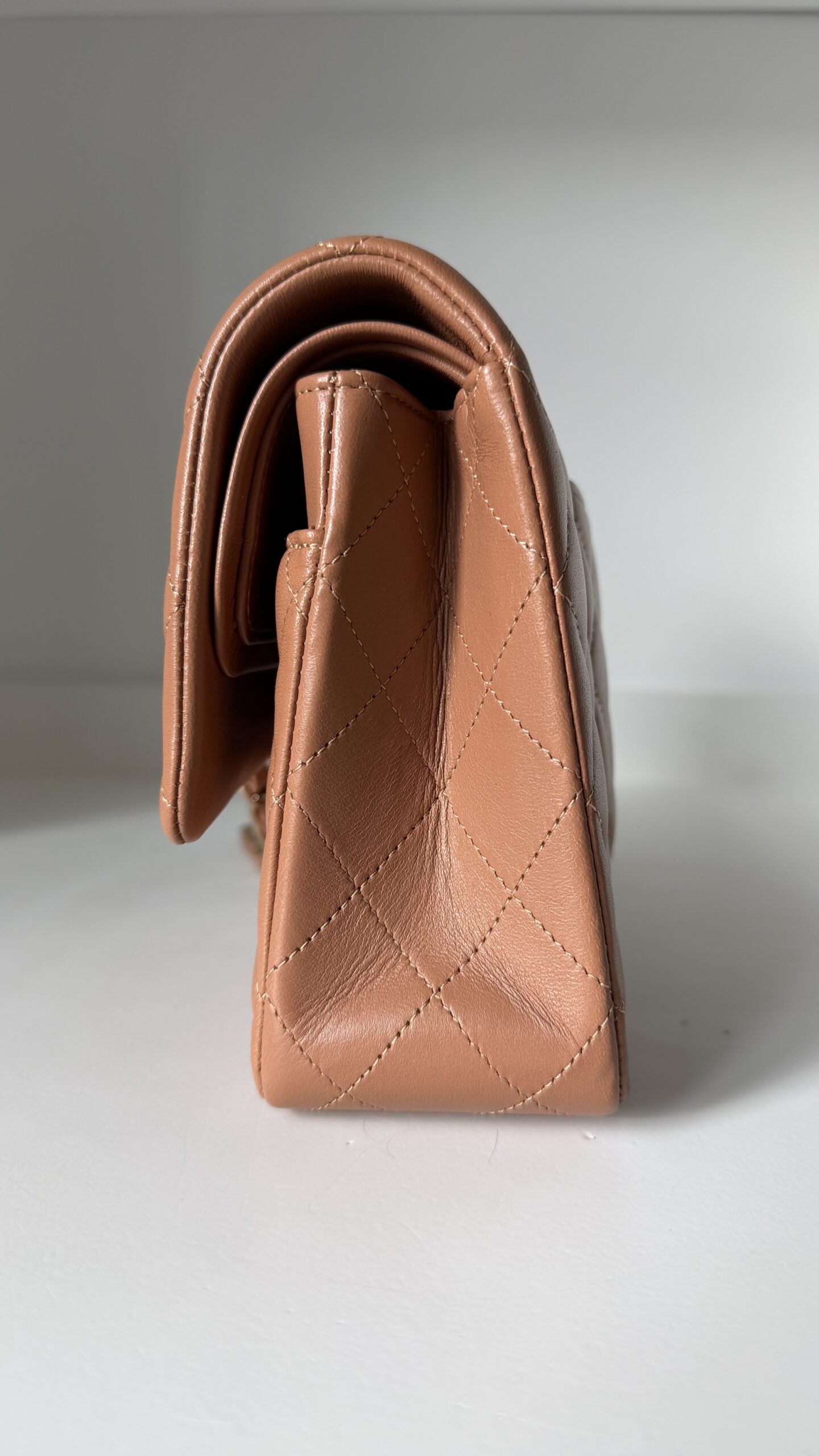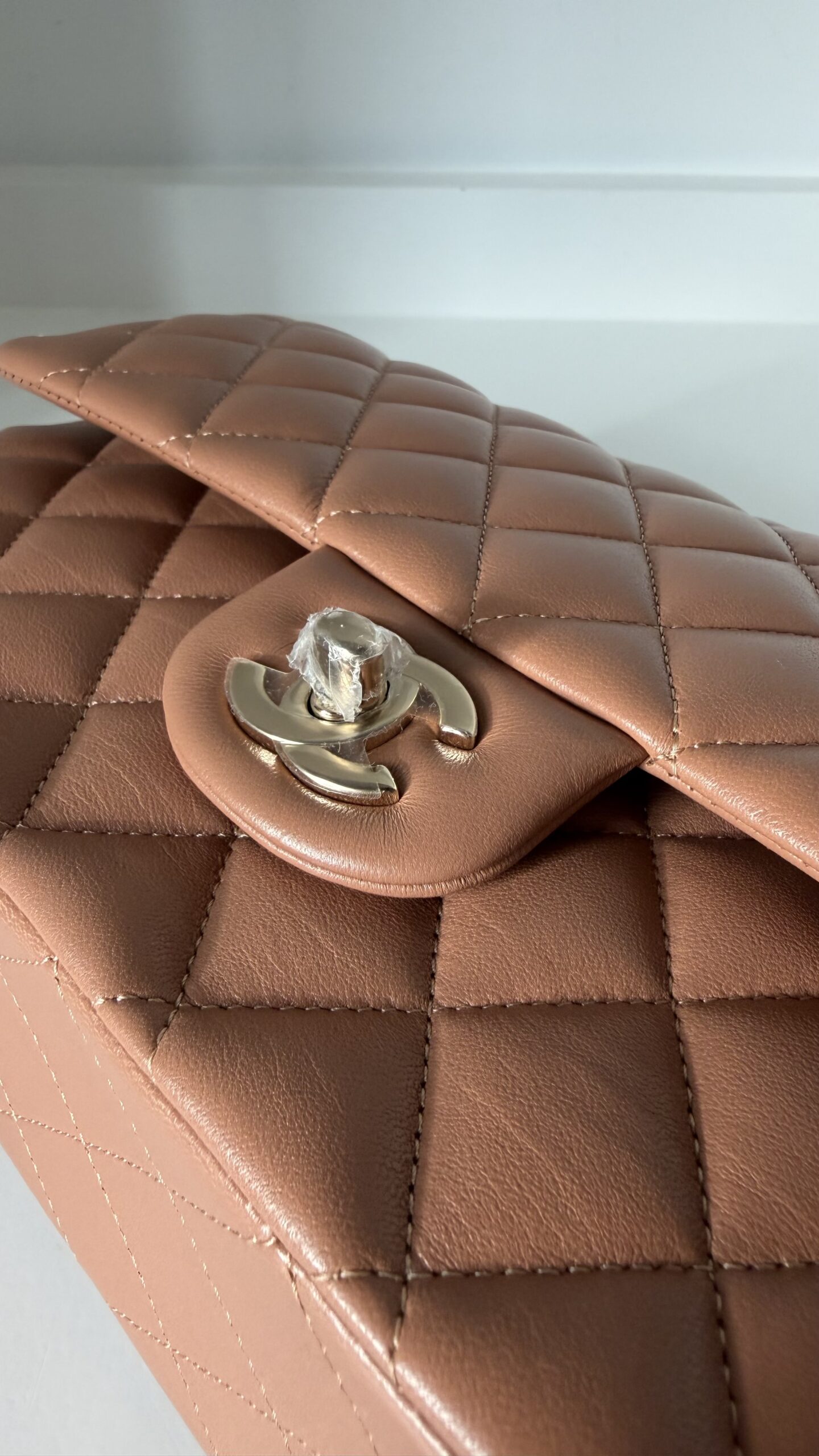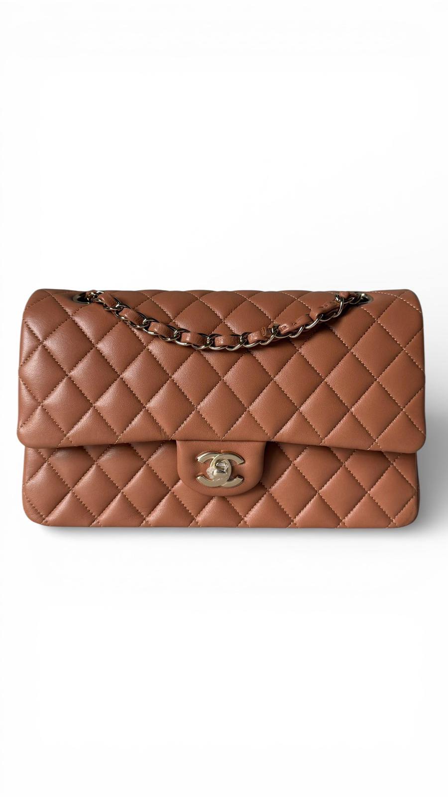 Chanel Medium Classic Double Flap Bag 22S Caramel Lambskin Light Gold Hardware