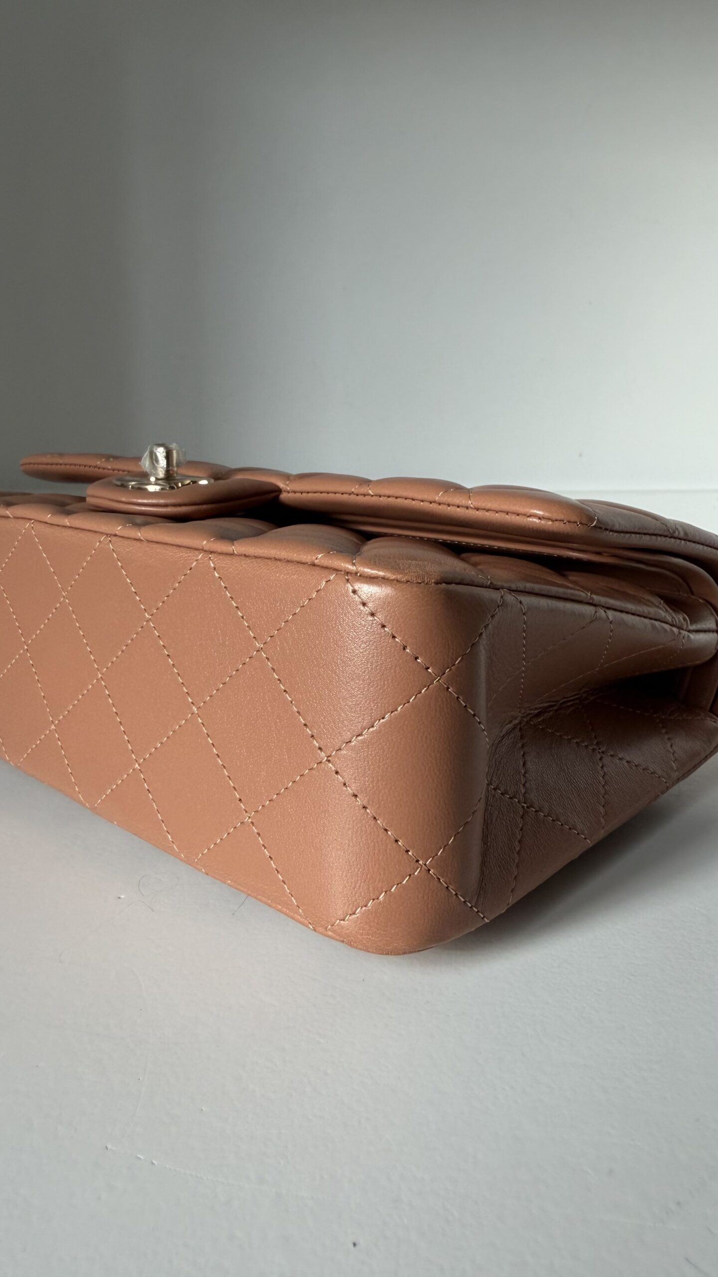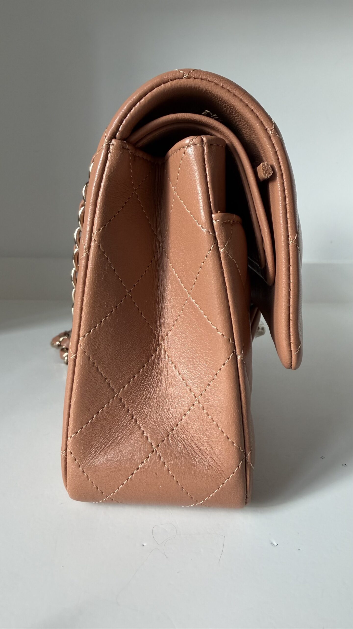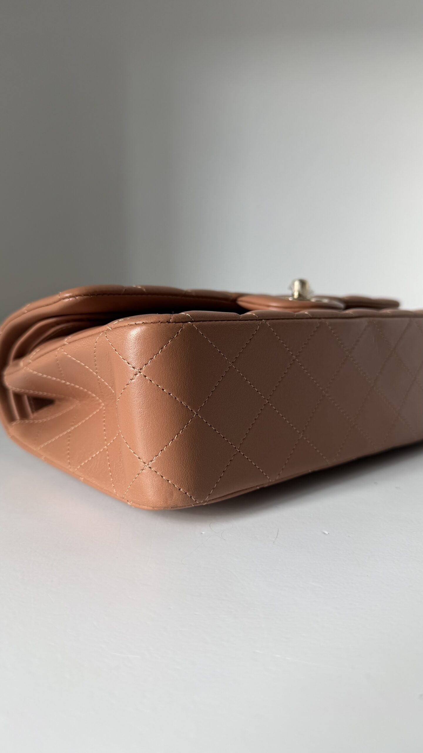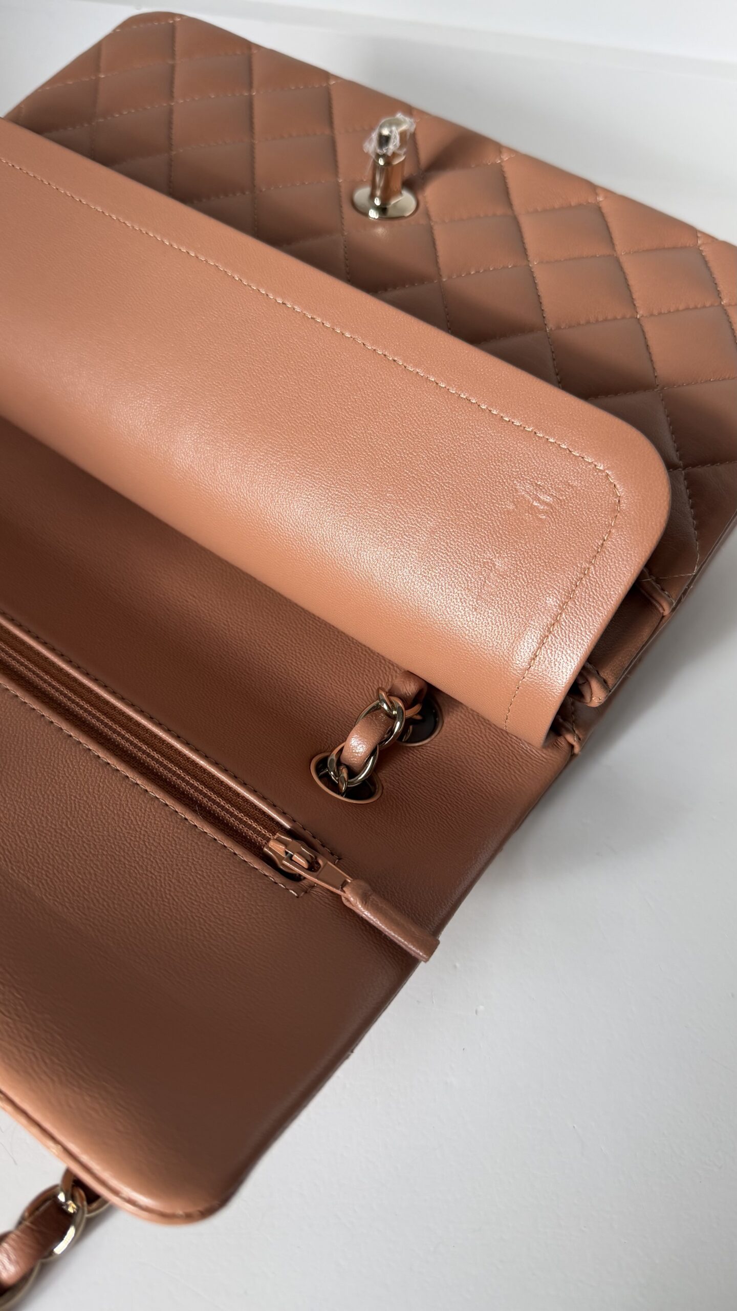 Chanel Medium Classic Double Flap Bag 22S Caramel Lambskin Light Gold Hardware