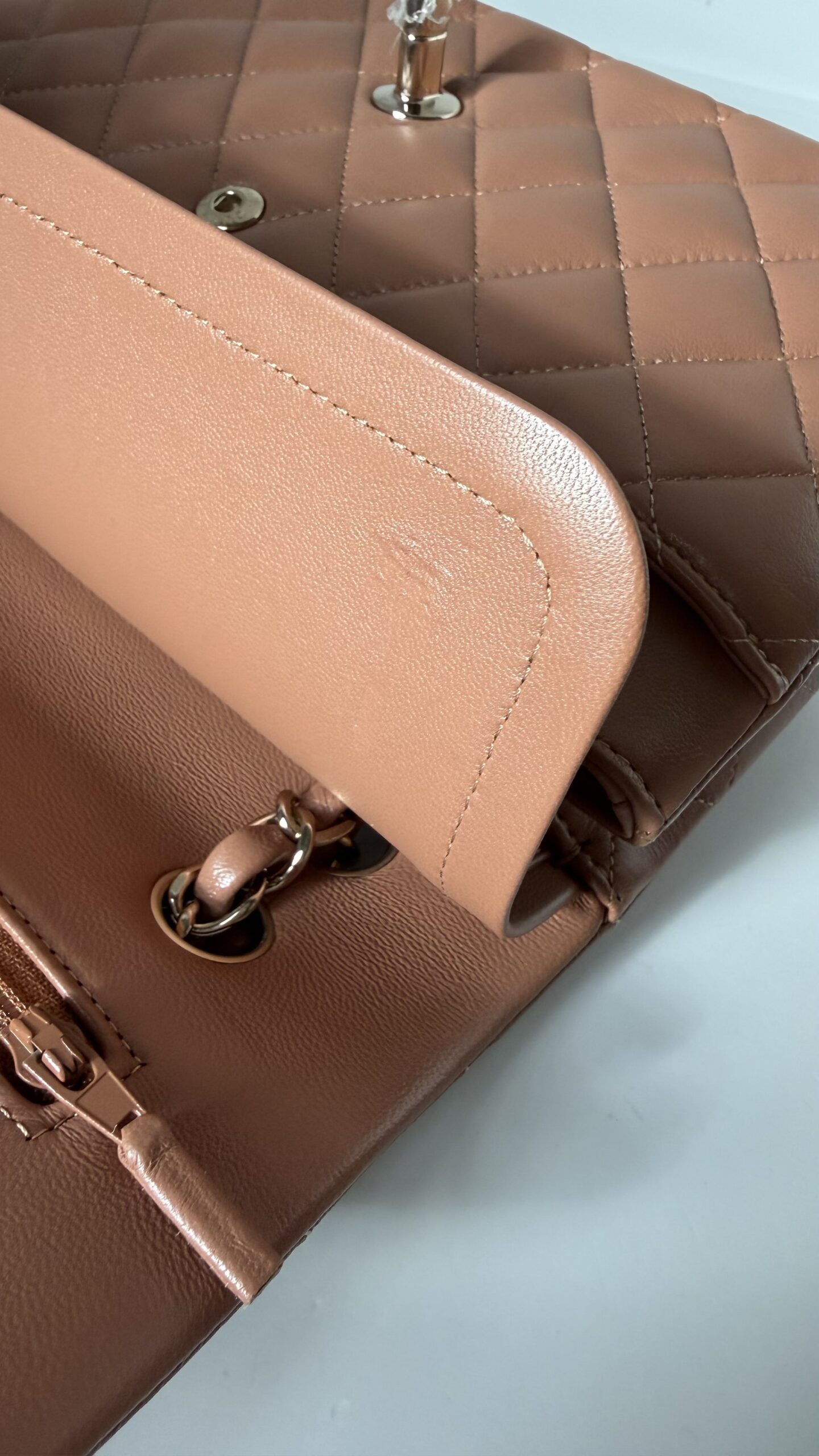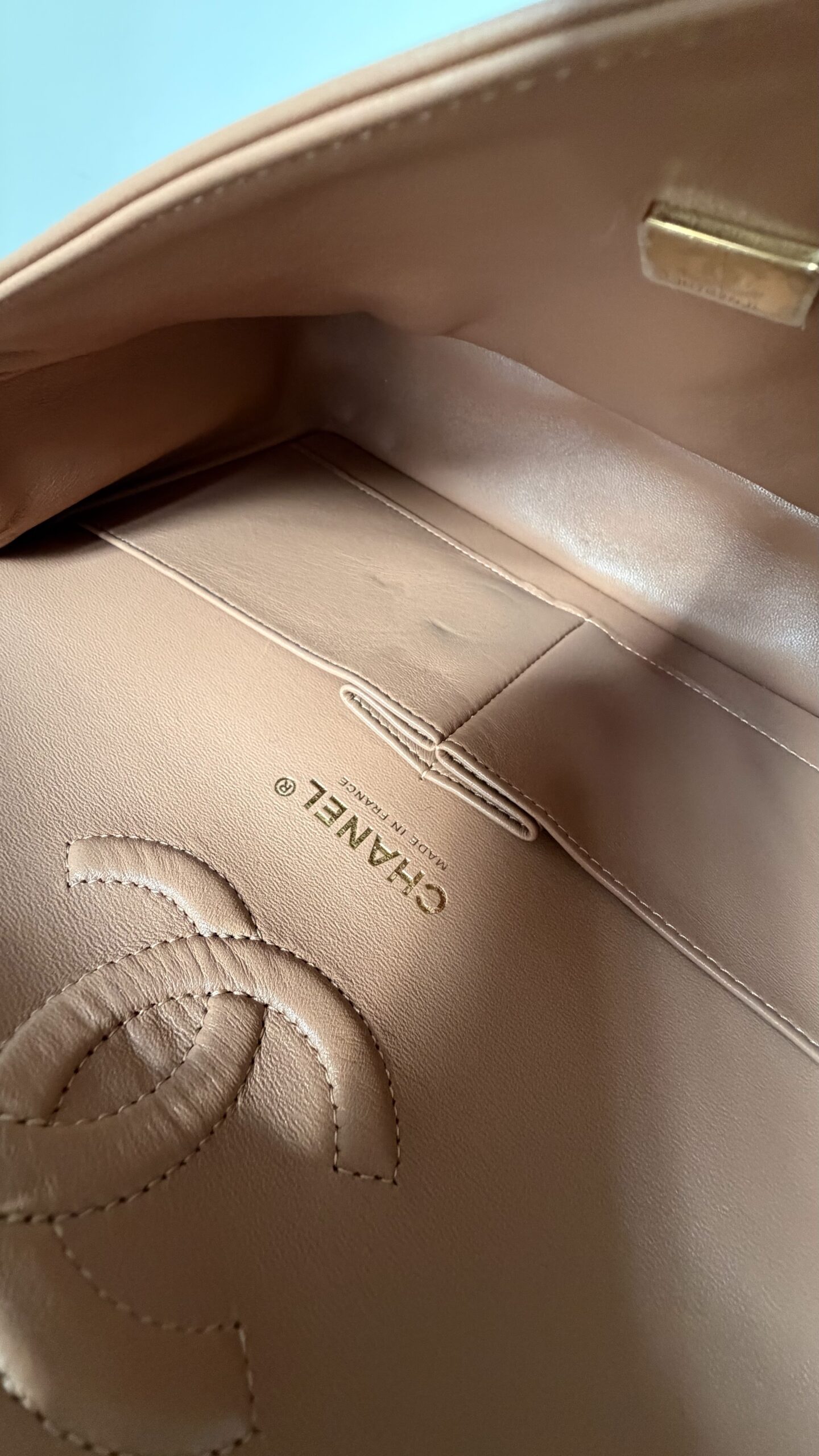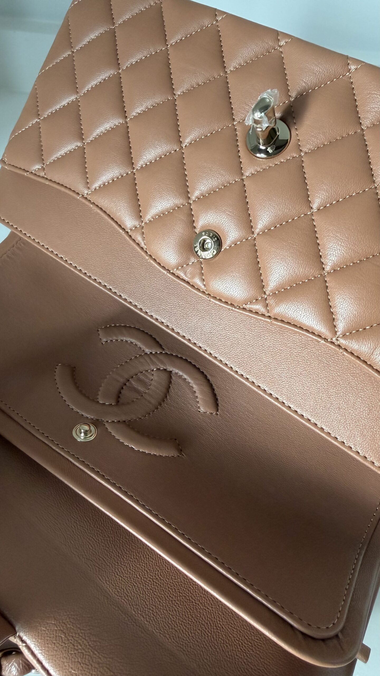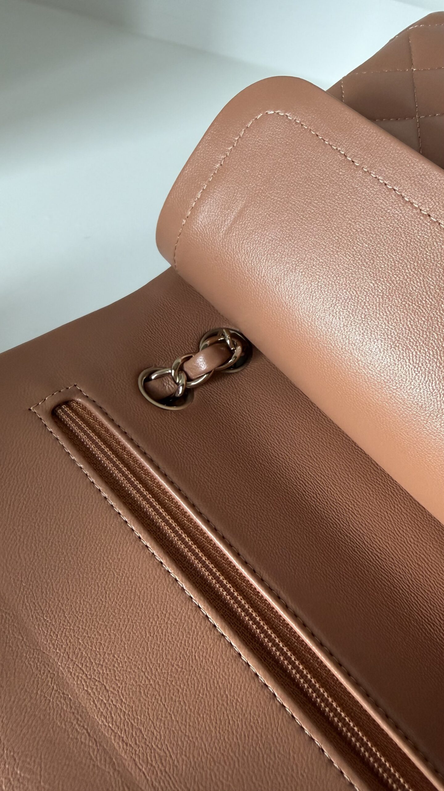 Chanel Medium Classic Double Flap Bag 22S Caramel Lambskin Light Gold Hardware