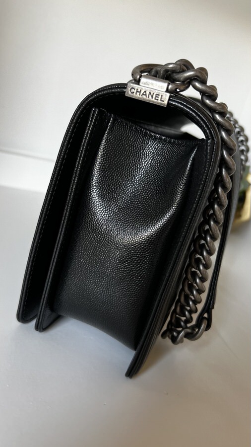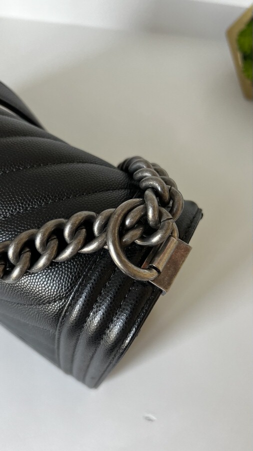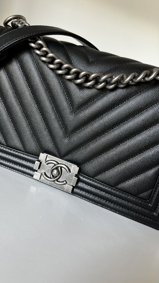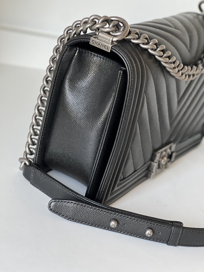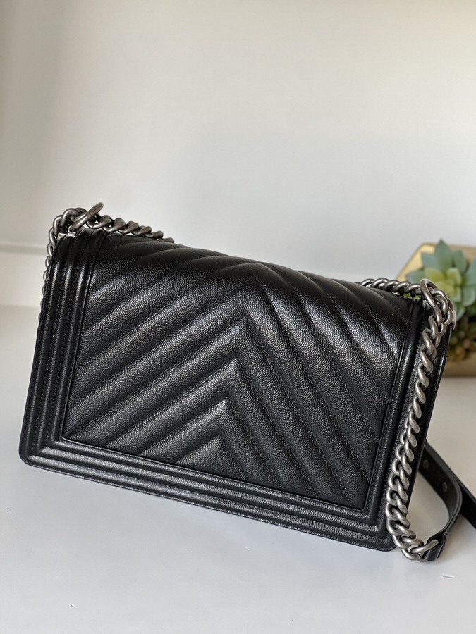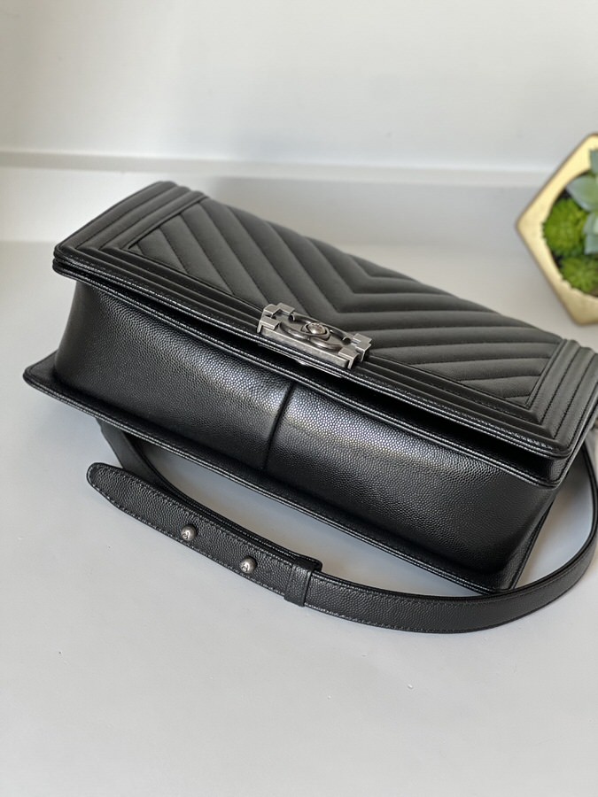 Chanel New Medium Boy Chevron Black Caviar Ruthenium Hardware