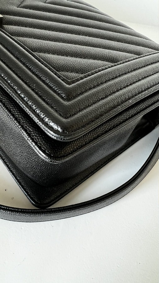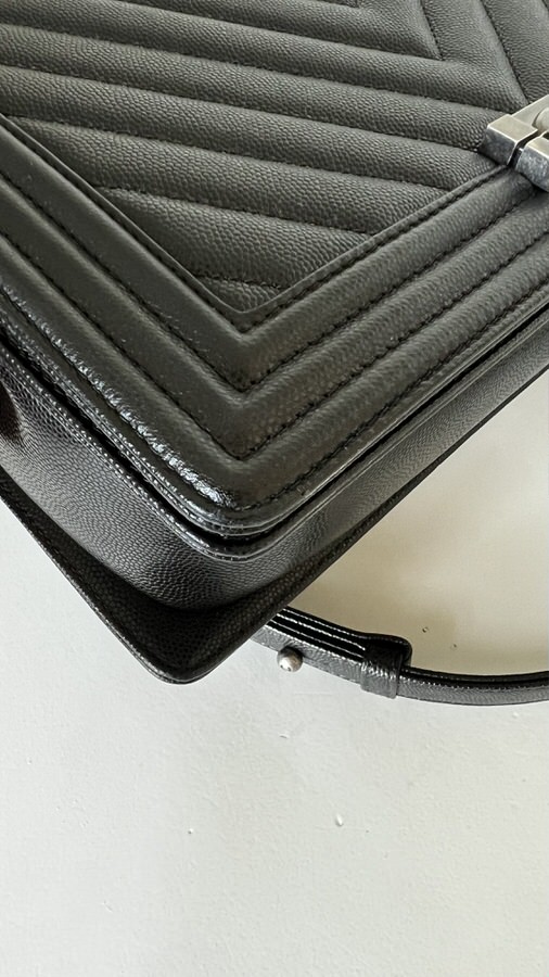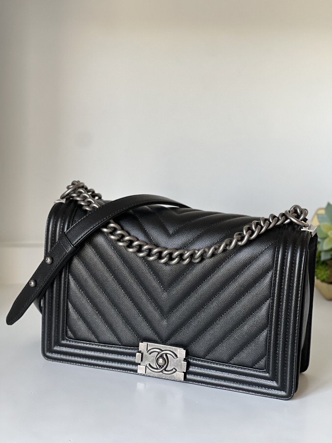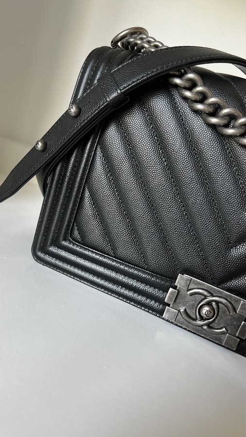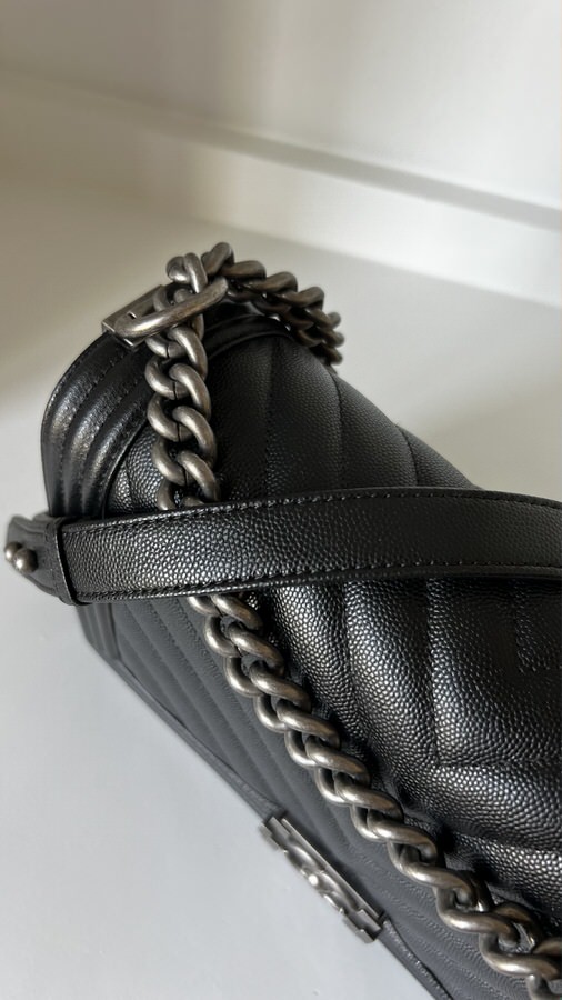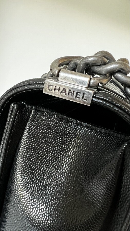 Chanel New Medium Boy Chevron Black Caviar Ruthenium Hardware