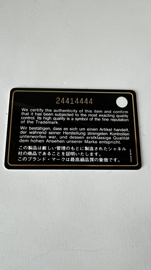 Comes with dust bag, box and card of authenticity; excellent used condition with very minimal rubbing on bottom edges-visible only at very detailed inspection and not easy to capture in photos