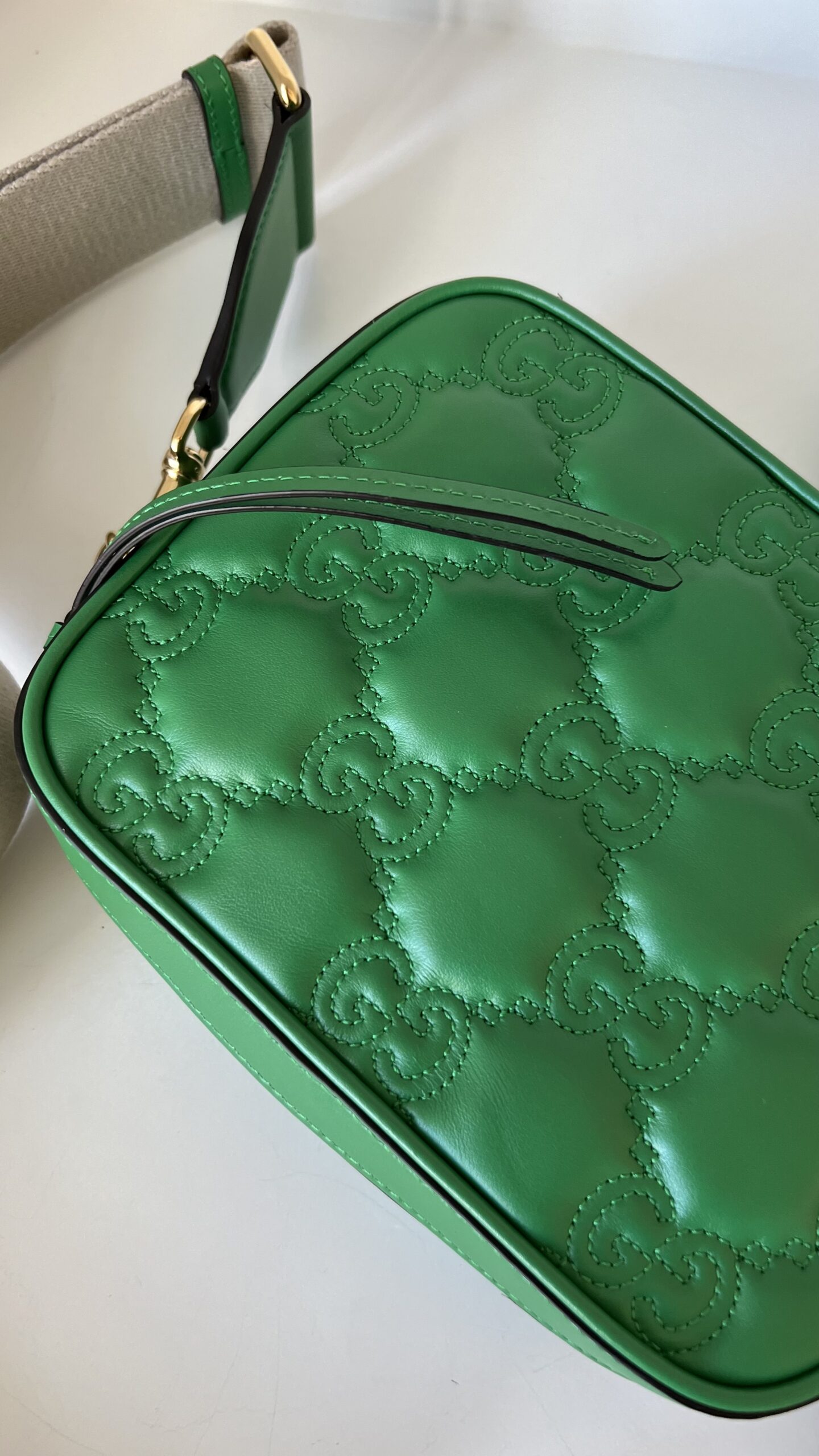 Gucci Zip Camera Bag GG Matelasse Leather Small Green