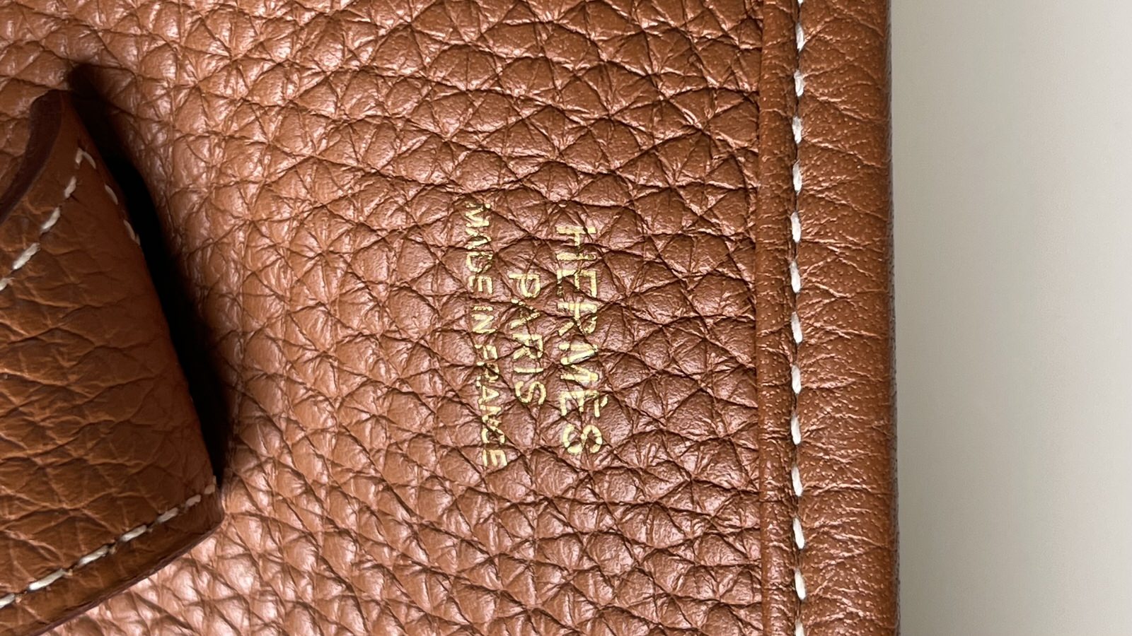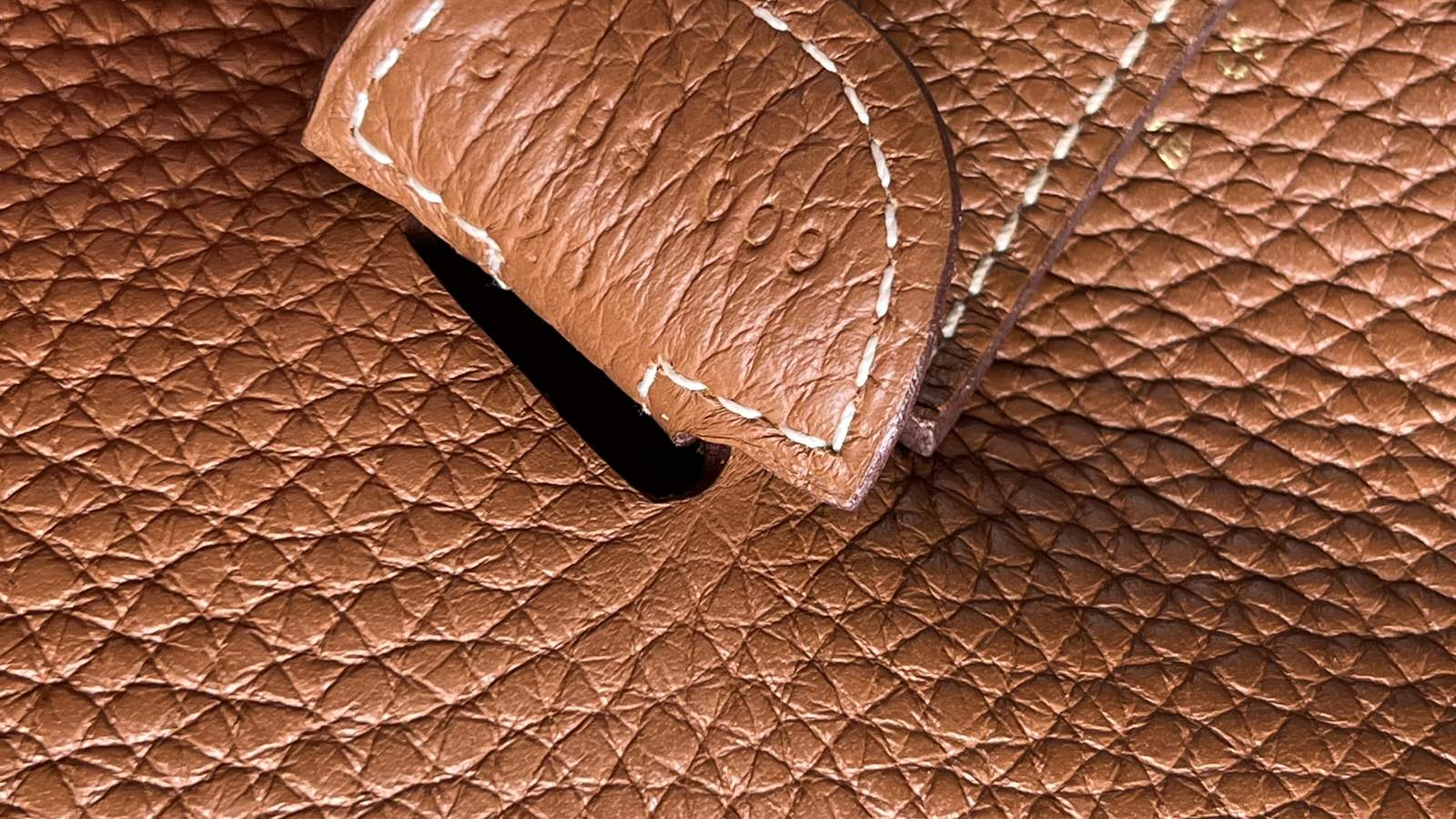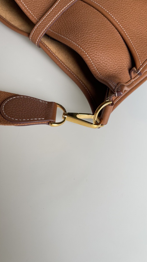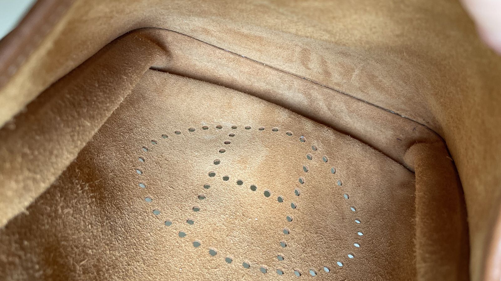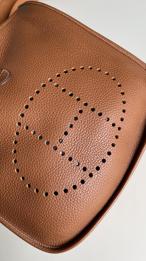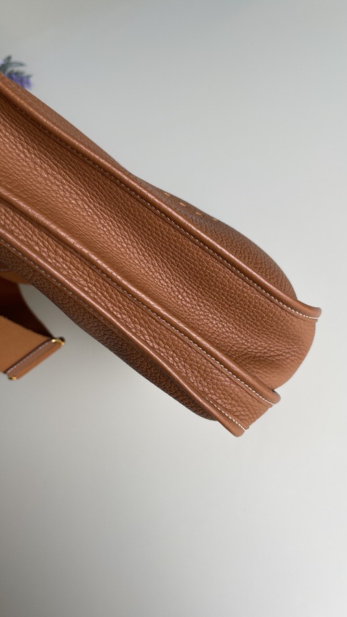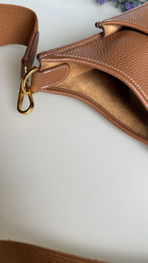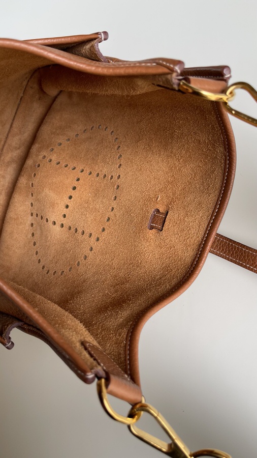 Comes with dust bag; exterior in excellent like new condition; interior back pocket has one light pen mark