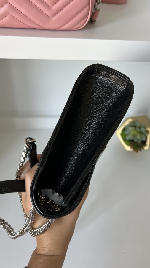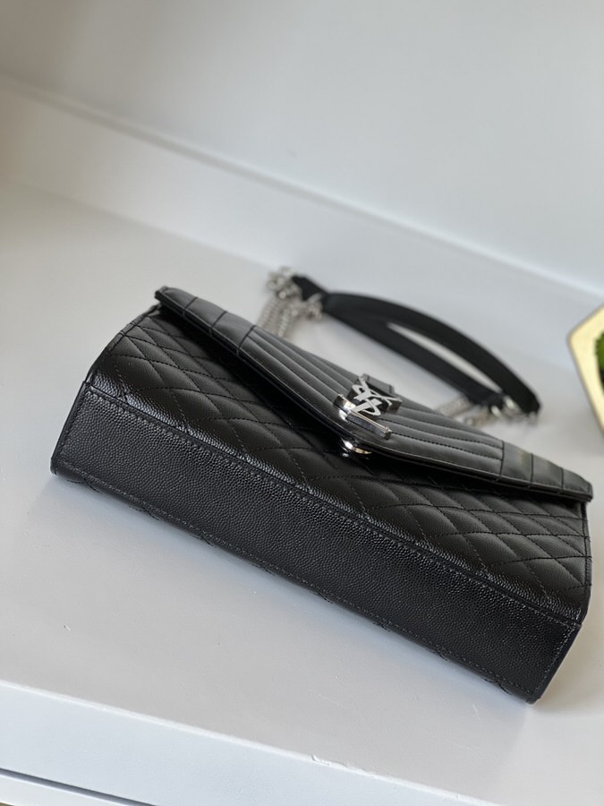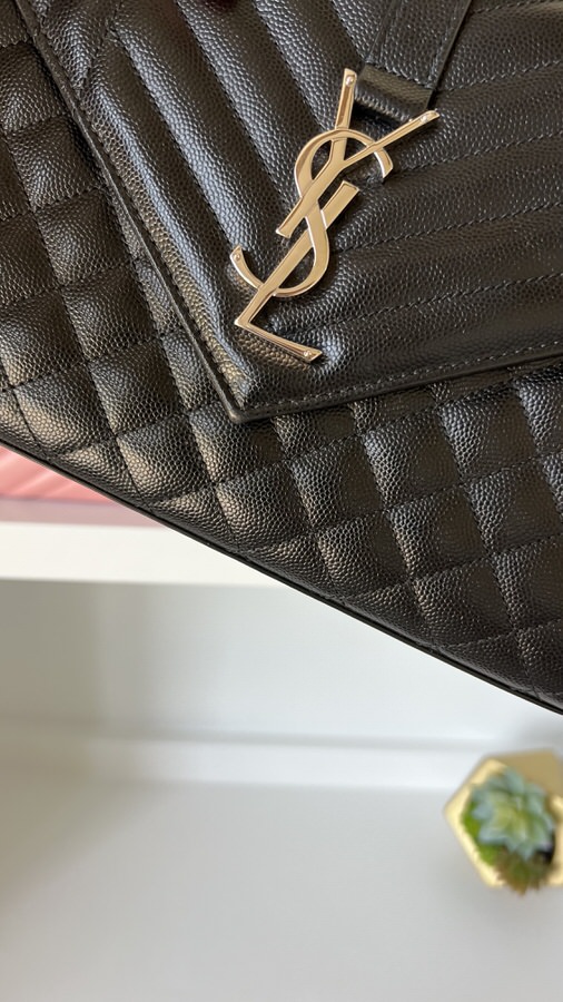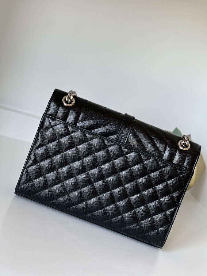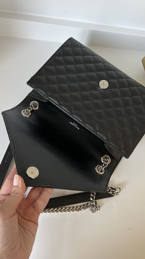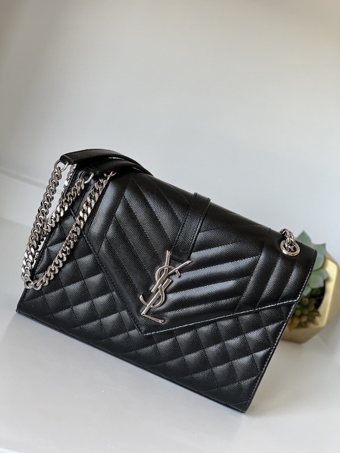 YSL Medium Envelope Black Silver Hardware